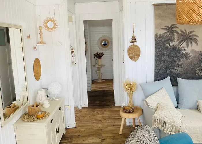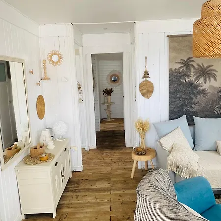 Chalet De Plage, Authentique !는 편안한 시간을 보내기 위한 소파, TV, 위성 채널이 있는 평면 TV가 마련돤 객실을 제공합니다.
